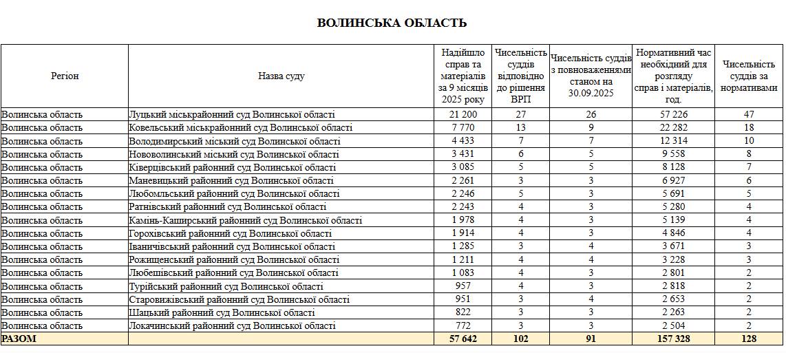 Рада суддів України оновила інтерактивну карту судів України з розрахунками нормативів навантаження на суддів і суди з урахуванням кількості справ, які розглядалися впродовж 9 місяців 2025 року.